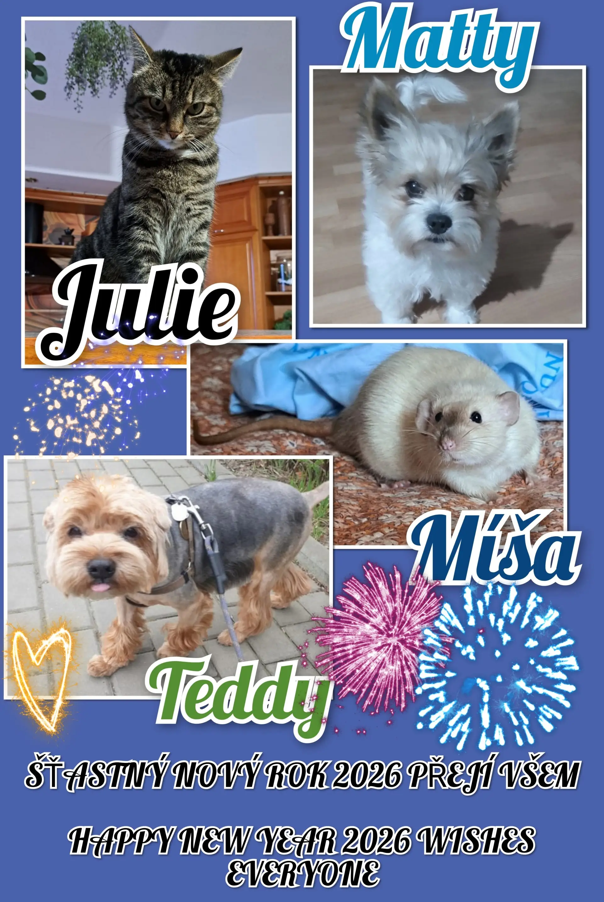| Jarka 27.1.25 15:53 | Matty, jak se máte, smečko? Pozdrav posílá panička od Rexíka. |