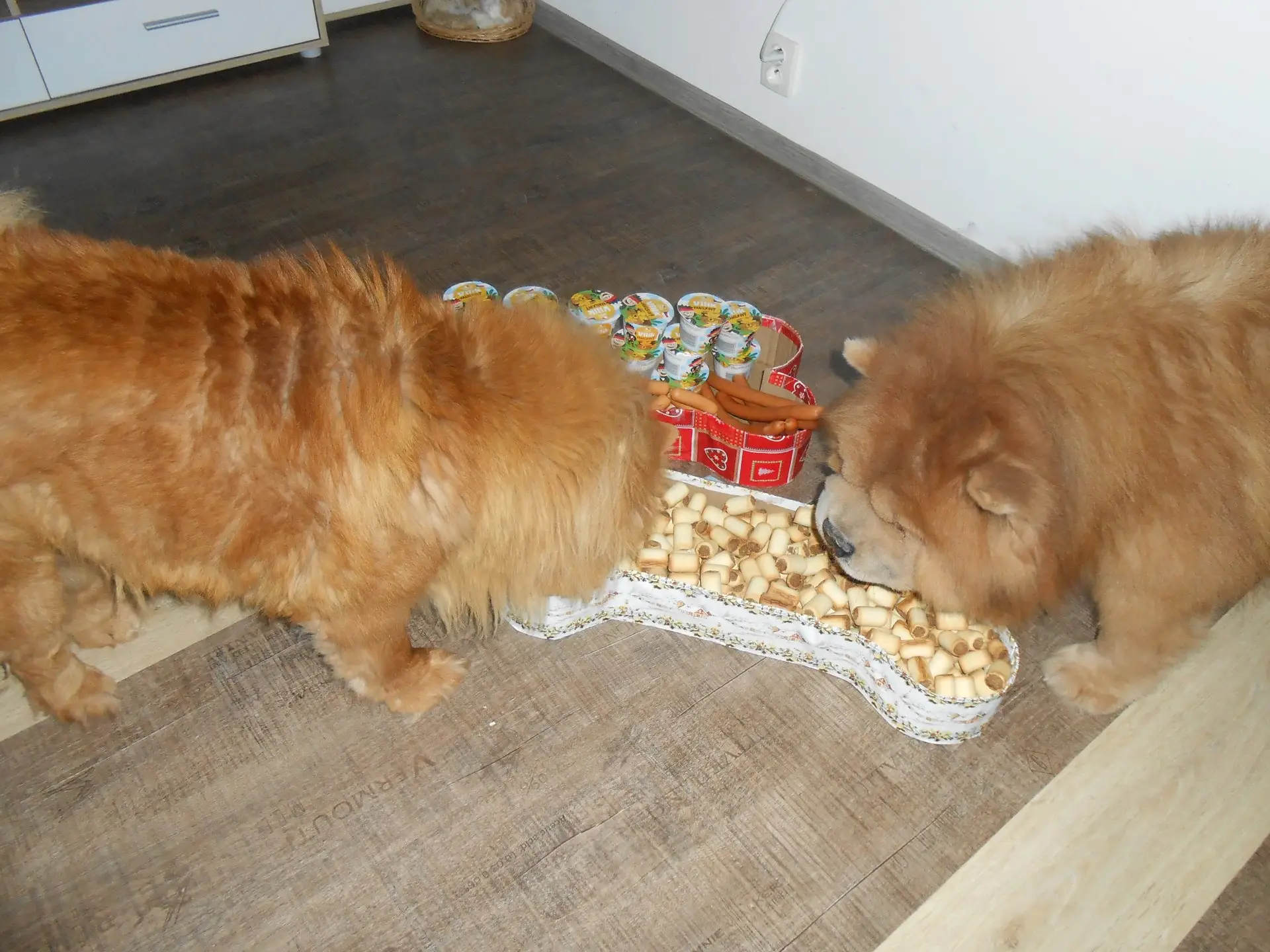 Původ: Červená fenka čau čau s PP, matka Odetta z Údolí sněženek, tatík Aramis Plamínek z Posázaví.